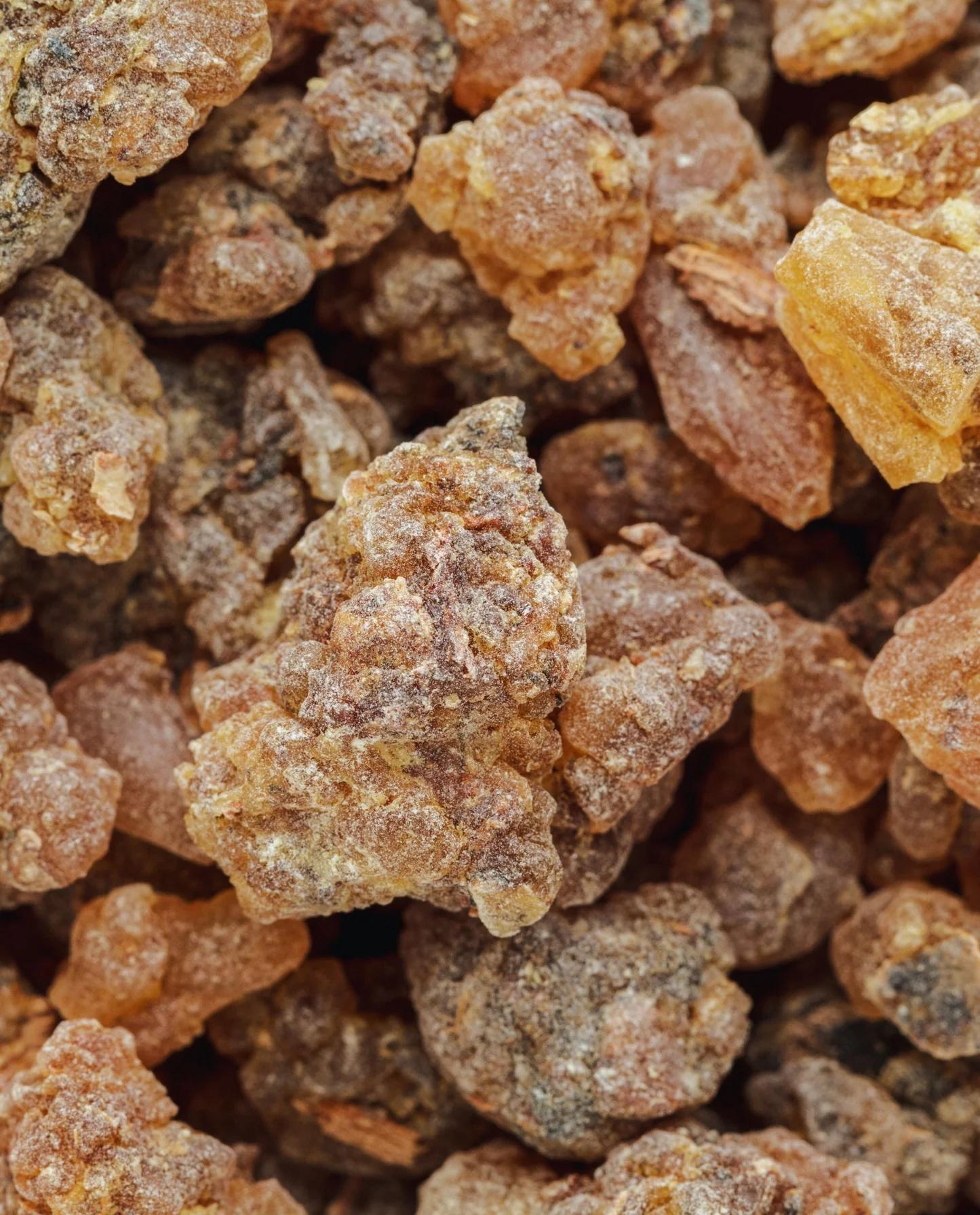 بنزوئین یا Benzoin صمغی طبیعی است که از درختان Styrax (عمدتاً در لائوس، تایلند و اندونزی) بهدست میآید. این رزین پس از تراوش از تنهی درخت و خشکشدن، بهعنوان یکی از منابع مهم نتهای بالزامیک در عطرسازی استفاده میشود. بنزوئین از دیرباز در طب سنتی و آیینهای مذهبی برای بخور دادن و خوشبو کردن فضا بهکار میرفته است.